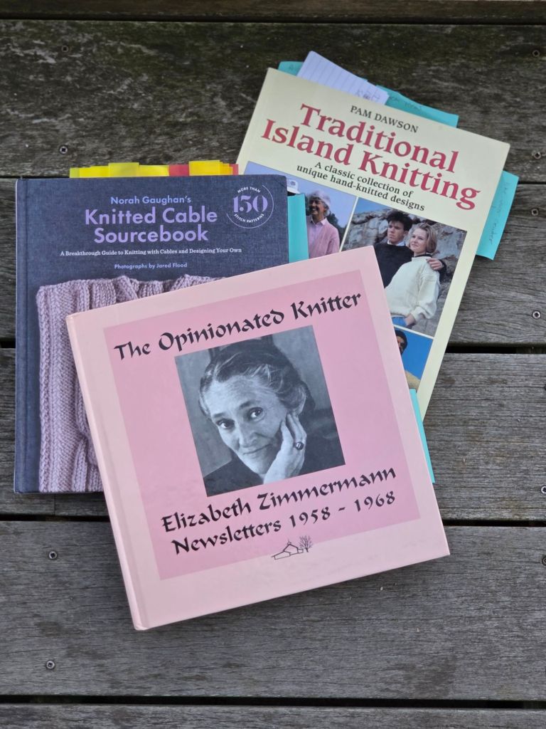 I will be altering the pattern just as Zimmerman would have wanted with the help of the Knitted Cable Sourcebook by Norah Gaughan’s and Traditional Island Knitting by Pam Dawson. A book review of these and more fisherman inspired textiles is on its way.
